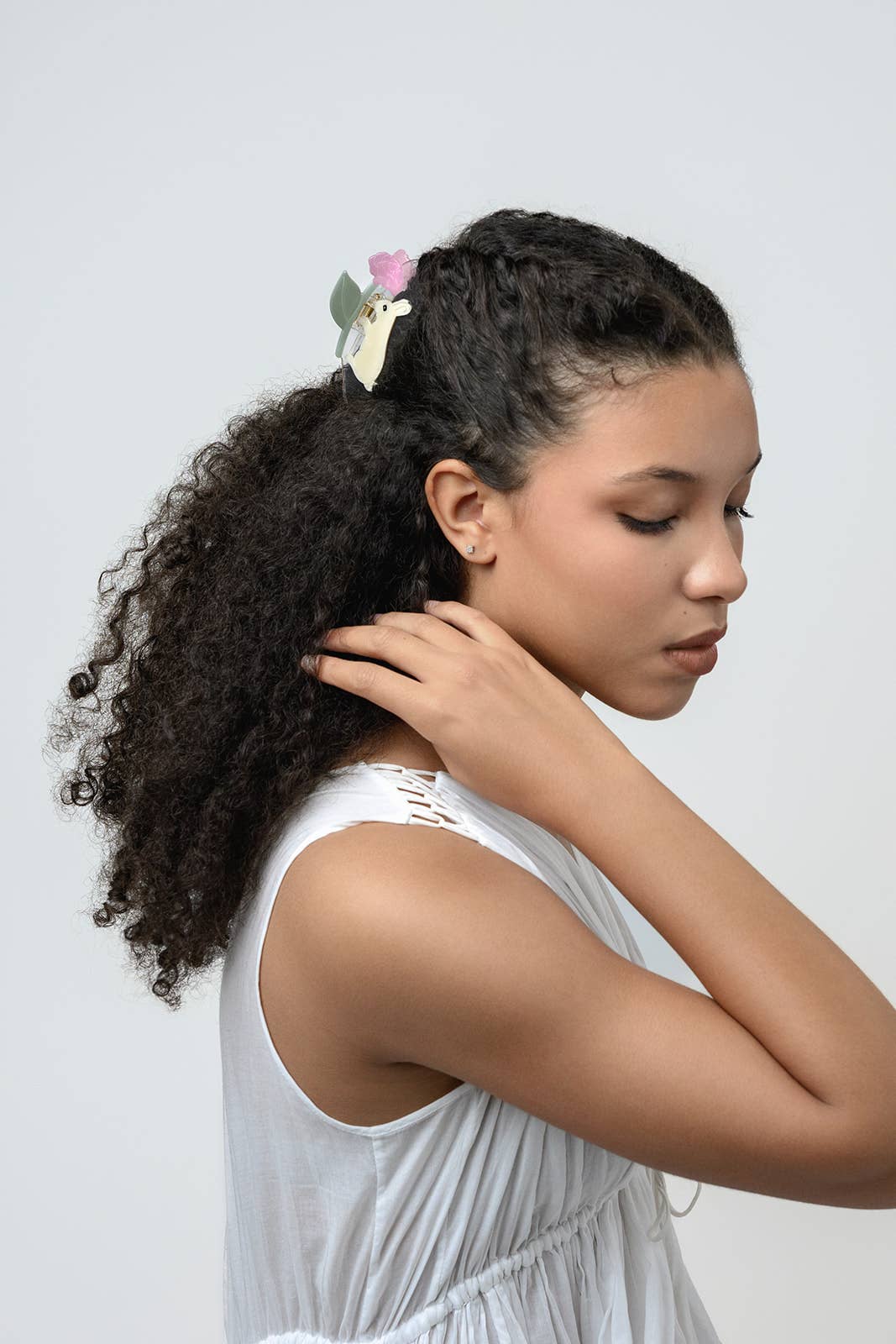Cream Bunny Rabbit with Pink Peony Flower Acetate Hair Claw