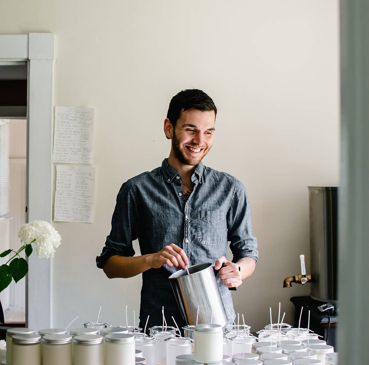 PALO SANTO Our original bestseller, Made since 2014 Primary Notes: Palo Santo Accents: Vetiver, Vanilla, Cinnamon Leaf The scent of the Ecuadorian Forest...   Palo Santo calms the mind & melts away stress and anxiety. Like a plume of fragrant white smoke; the alluring fragrance of Palo Santo & soft spice, entwine your being in a weightless cloud of calm.  Recently Featured in COSMOPOLITAN as an "affordable candle to make your home smell expensive "                                                             Designer's Note: Many years when into sourcing the best Palo Santo oil I could find ( I've tried so many suppliers ). * Essential Oils, direct from partner farms * 100% Natural * Scented exclusively with essential oils * 8 oz  /  50 hr * Vegan * USA Made Glass Vessel * Hand-poured in Rhode Island