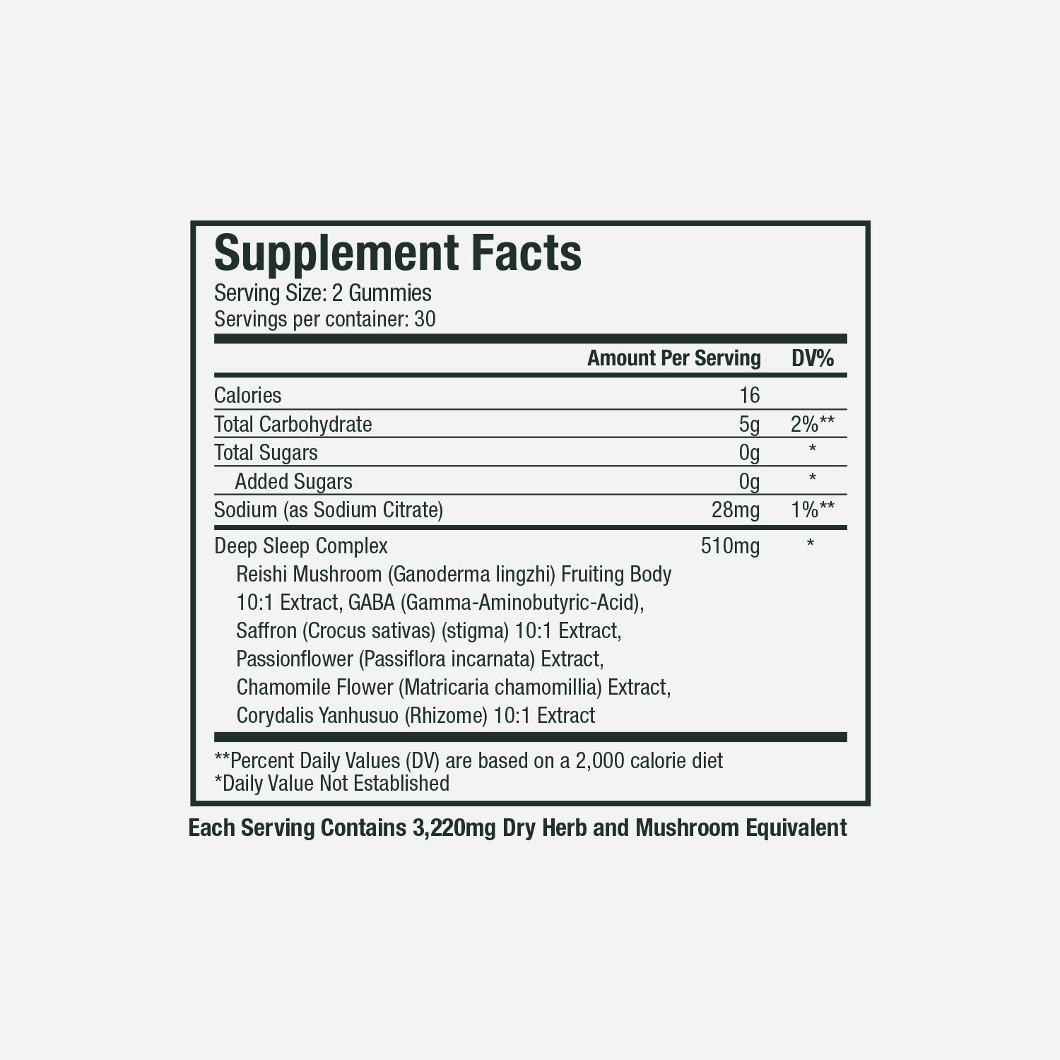 The synergistic combination of Reishi,  GABA, corydalis, passionflower and chamomile work harmoniously to quiet the mind and body helping you slip into a restorative rest.
